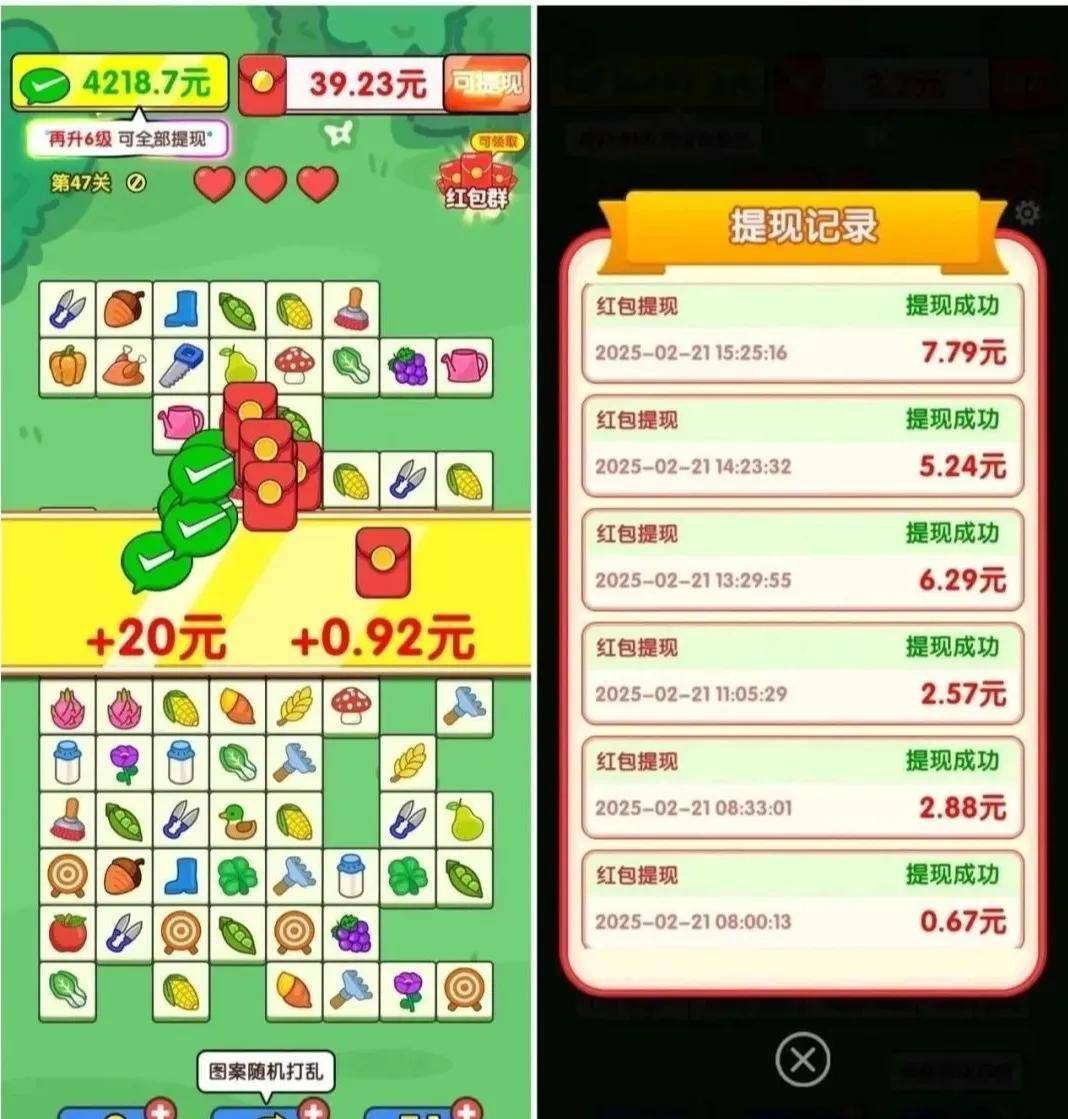 微信提现顺畅,但大额建议分批,小额10元内操作稳妥。用户测试显示,前期关卡易过,红包多,后期需技巧,但整体正反馈高。这款赚钱小游戏不只赚钱,还像养成小农场,玩久了上瘾。