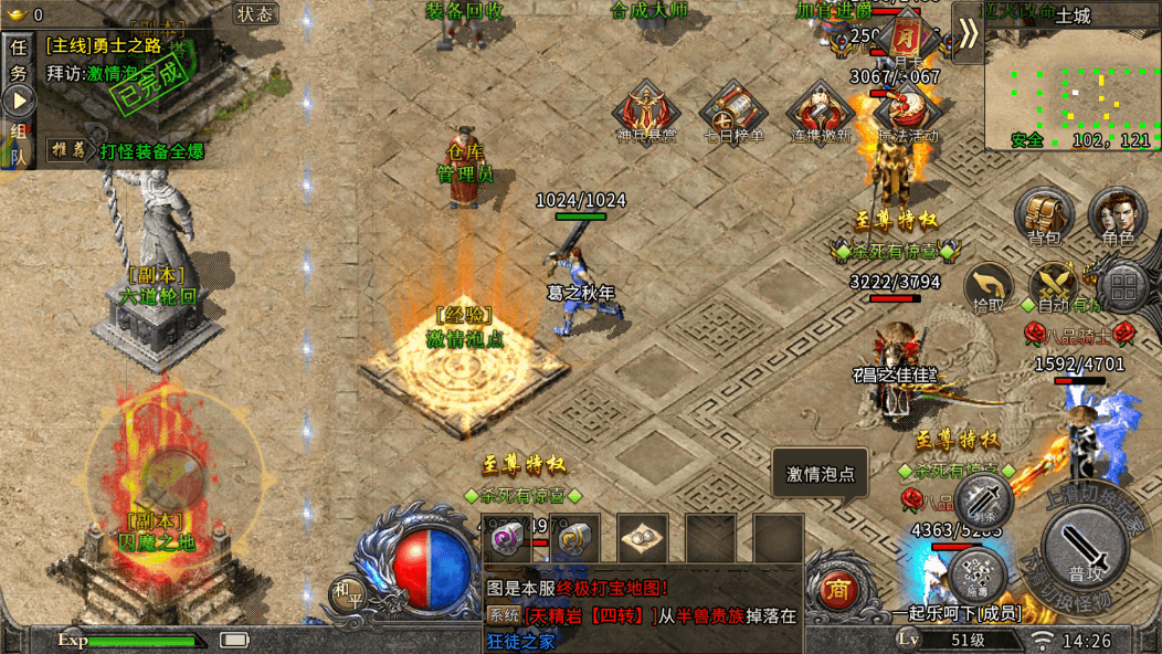 道士:全能辅助,召唤兽AI升级后可自动施毒,单刷BOSS效率极高。“群体治愈术”治疗量随道术提升,团队战中不可或缺。