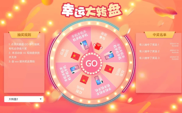 作为历来年会的压轴抽奖环节,很多公司都会选择Hi现场大屏互动团队开发的“3D酷炫抽奖”形式。大屏上3D效果滚动所有伙伴的头像,在全场高度关注下,寻觅现场锦鲤,送福利同时轻松吸引全场目光,现场氛围嗨翻天。