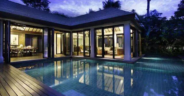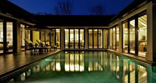 别墅中的小型海。香水君澜户户私家泳池,无边无际的泳池似乎可以游到海的另一边。晨起,朝着波光粼粼纵身一跃。傍晚,在水边看夕阳,暗香浮动,心已动,人已醉。