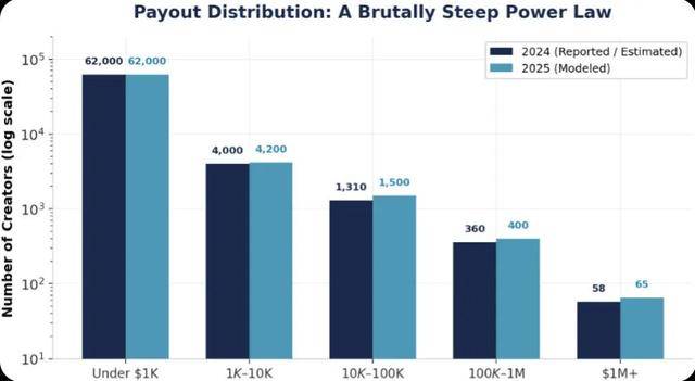 是的,UGC的雪球依然在膨胀,2025年向开发者的支付总额飙升47%,达到惊人的22亿美元。但雪球内部的结构已发生剧变:“赢家通吃”的马太效应从未如此清晰,而“赢家”的代价,是必须将自己置于全球监管的聚光灯下炙烤。