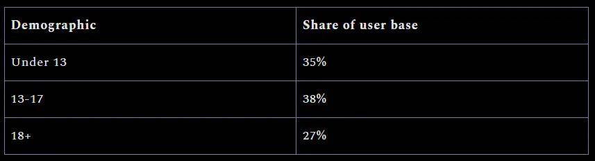 正如在第四季度财报电线用户群的同比增长率超过50%,是年轻用户群体增长率的两倍。这对业务来说是一个重大胜利,因为成年用户的平均变现能力比年轻用户高出40%。考虑到Roblox在美国18-34岁人群中的日覆盖率仍不到10%,未开发的市场仍然十分可观。