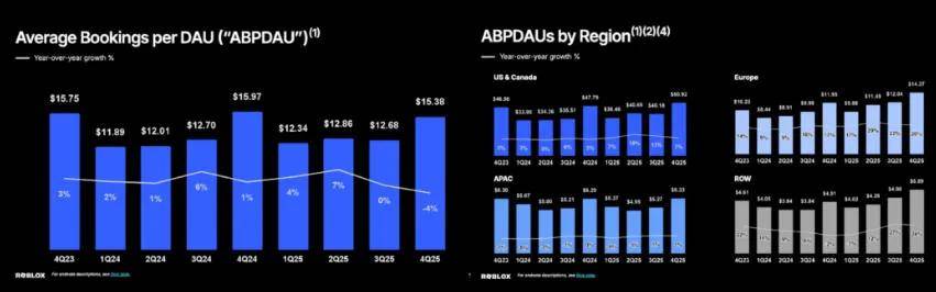 地理细分数据揭示了数量与效率之间的战略性权衡。在美国和加拿大这一平台的主要收入支柱地区,预订收入稳步增长,付费用户增加了34%。更重要的是,该地区的日均活跃用户平均预订收入(ABPDAU)实现了两位数增长,这表明成熟市场的消费仍未触及上限。