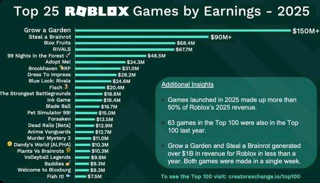 尽管有这些技术改进,2025年的情况表明,Roblox上取得巨大成功的主要推动力仍然是口碑传播。《种个花园》、《偷走脑腐》和《森林99夜》等作品的空前增长由YouTube和TikTok上的网红带动,一个视频就能让一款体验的同时在线用户飙升至数百万。