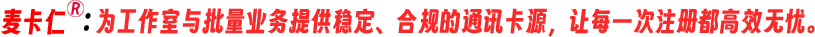 为完整解决项目落地的基础设施需求,我们特别推出 麦卡仁® 品牌,专注于为工作室、企业及创业者提供稳定、合规、高激活率的注册卡、流量卡及各类通讯卡源。麦卡仁® 卡品与 造梦®号卡CPS系统 无缝协同,形成“稳定卡源 + 高效系统 + 运营支持”的一站式解决方案,显著降低您的采购成本与运营风险,是您业务规模化拓展中最可靠的“弹药”补给站。