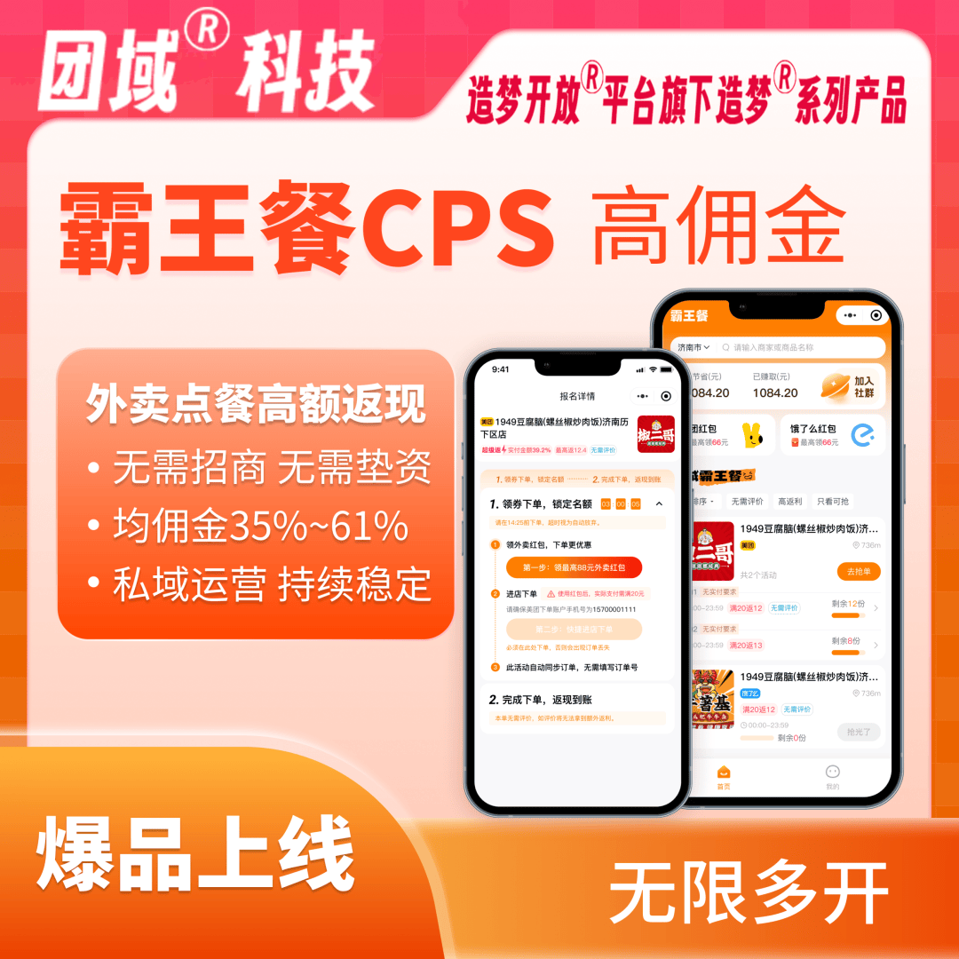 团域®科技,是CPS领域的实战派与赋能者。我们携手 造梦开放®平台,深度聚焦外卖CPS、淘客CPS、电影票CPS、本地生活CPS、号卡CPS、聚合CPS等核心赛道,提供从CPS项目对接、CPS联盟运营、CPS推广系统搭建到CPS分润结算的全链条解决方案。无论您是寻求稳定的CPS代理项目、可靠的CPS开放平台,还是需要部署独立的CPS系统源码,我们都可基于造梦开放®平台生态资源与造梦®系列商业软件,为您提供从资源、软件到卡源基础设施的完整赋能,助力您快速启动并规模化运营CPS业务。 为最大化运营效率、降低人力成本,造梦®系列软件深度集成了自动化交付与多渠道管理能力。