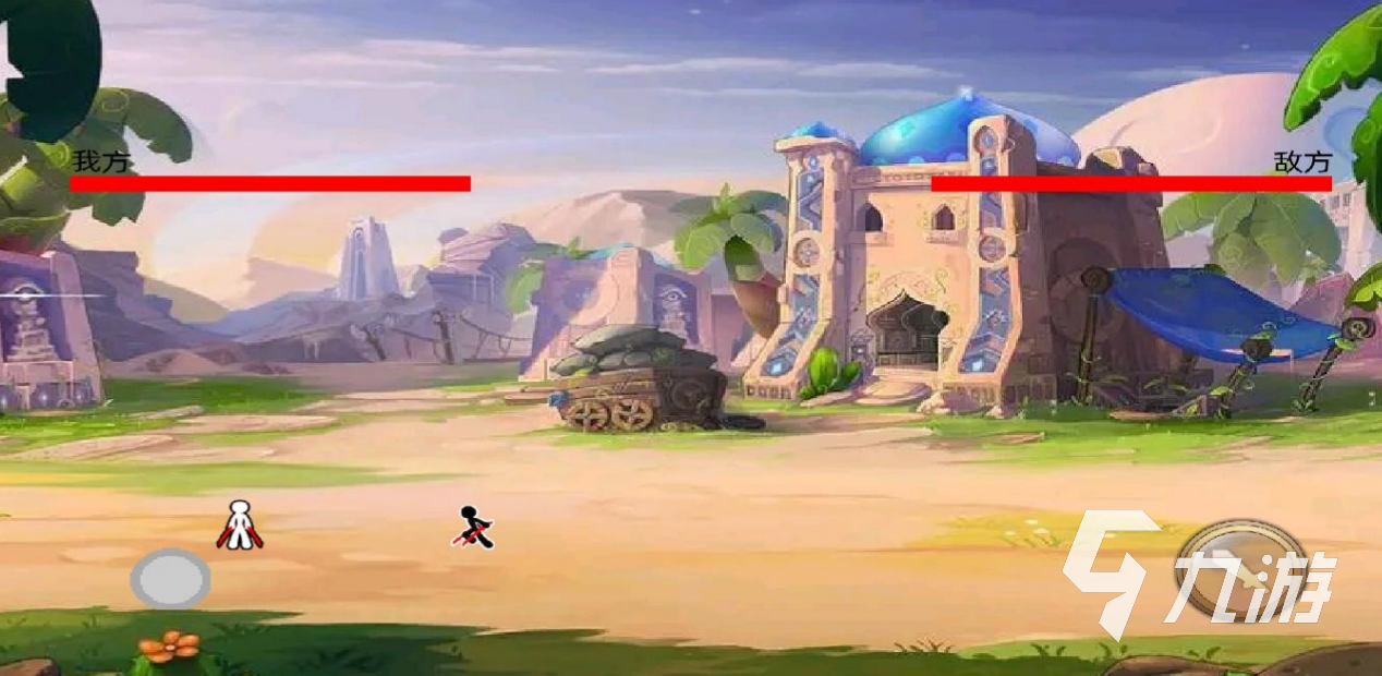 这款游戏也并不需要登录,点开游戏图标之后只有两个选项,设置和开始游戏,玩家可以在设置中调节音量和亮度,点击开始游戏后就要选择一样武器,让火柴人带着武器进入游戏跟对手对打,将对手的生命值打空即可胜利。游戏的难度会越来越高,玩家需要苦练自己的技术才能击败强大的对手。