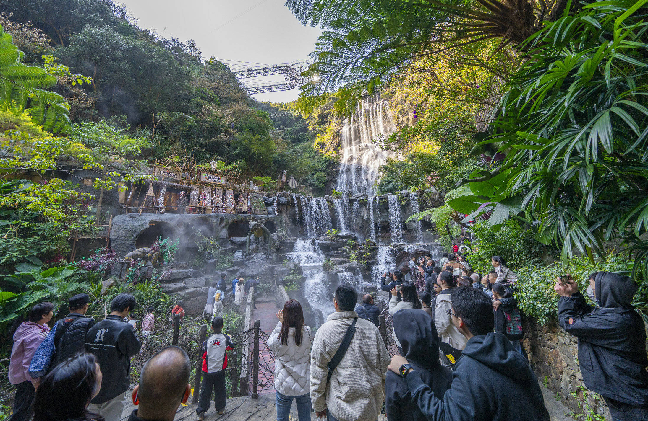 沉浸式人景互动是古龙峡的“新密码”。元旦期间,该景区创新引入的“全园情景互动”模式让来自各地的游客在欣赏自然景观的同时,与身着特色装扮的“部落野人”不期而遇,演员们自然融入各个核心景点,与游客进行即兴、友好的互动,将单纯的山水游览升级为一场充满惊喜的沉浸式的丛林奇遇。“借助‘情景式沉浸’与‘角色化互动’,我们让静态的风景转变为动态的、可参与的文化场景,让游客从旁观者转变为参与者。”
