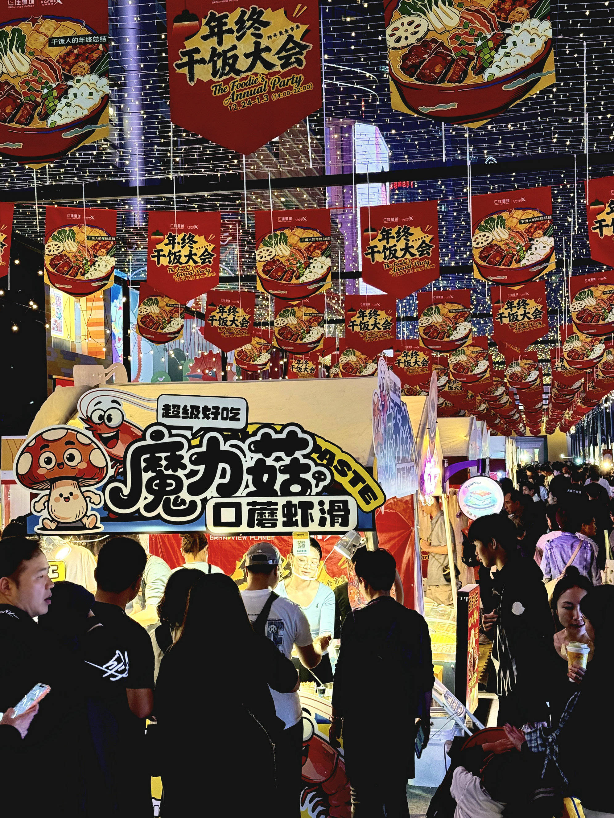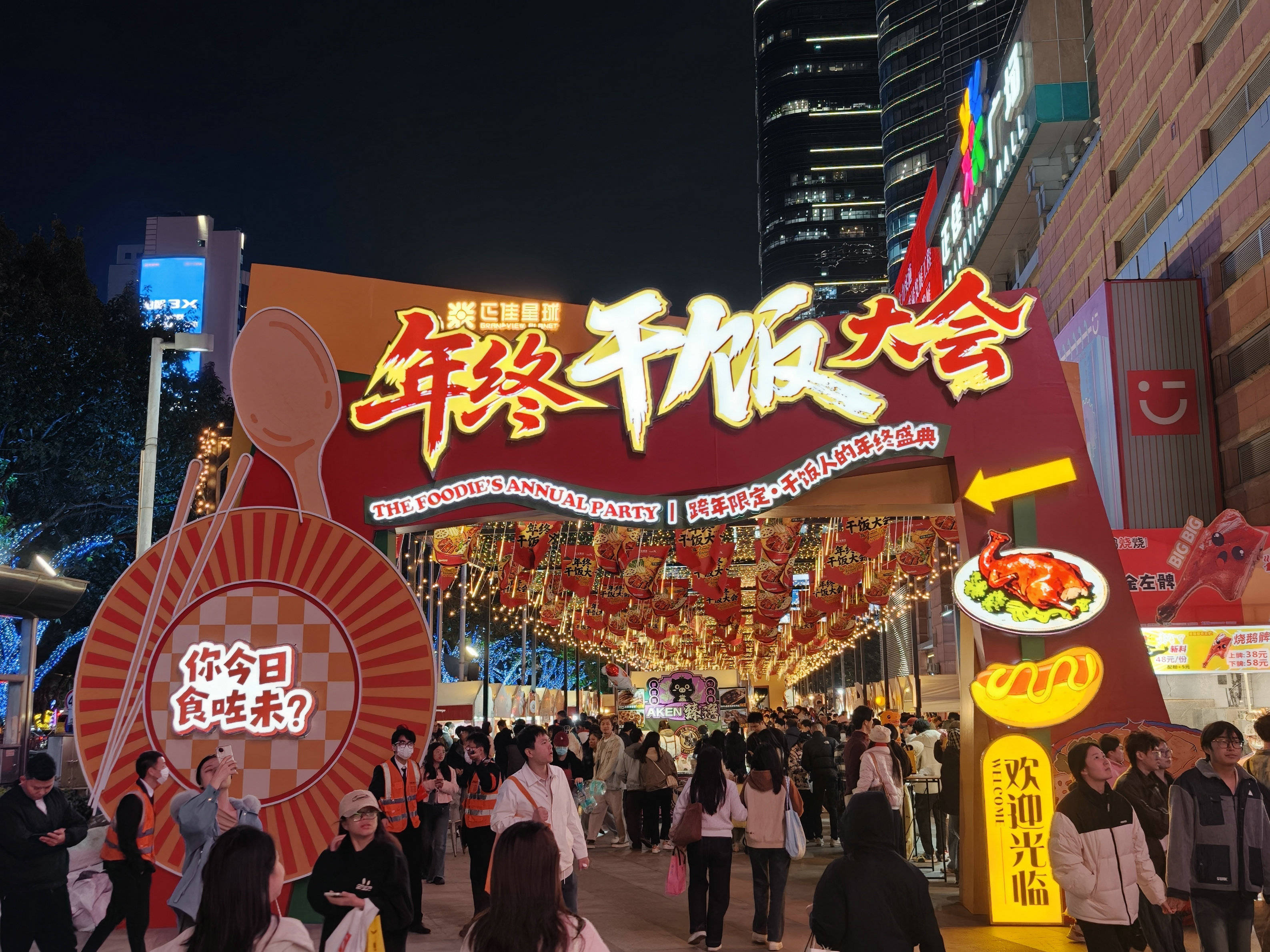 元旦假期第一天,正佳广场单日客流超过28万人次,同比上涨47%创历史新高,销售额同比上涨22%。丁财两旺背后的密码是“升维”。作为全国客流量最大的天河路商圈的核心商业综合体,正佳广场在元旦假期前就拉开了“年终干饭大会”美食市集的序幕,现场汇聚超过70个特色摊位,既有风靡社交网络的创意网红小吃如奶皮子糖葫芦、固体杨枝甘露,带来新奇体验;更囊括了历经时间考验的广府经典风味,如现拉港式奶茶、手艺地道的顺德双皮奶、皮脆肉嫩的东莞烧鹅以及深巷炭火烧鸡,让市民一站式尽享“从网红到经典”的味觉之旅。